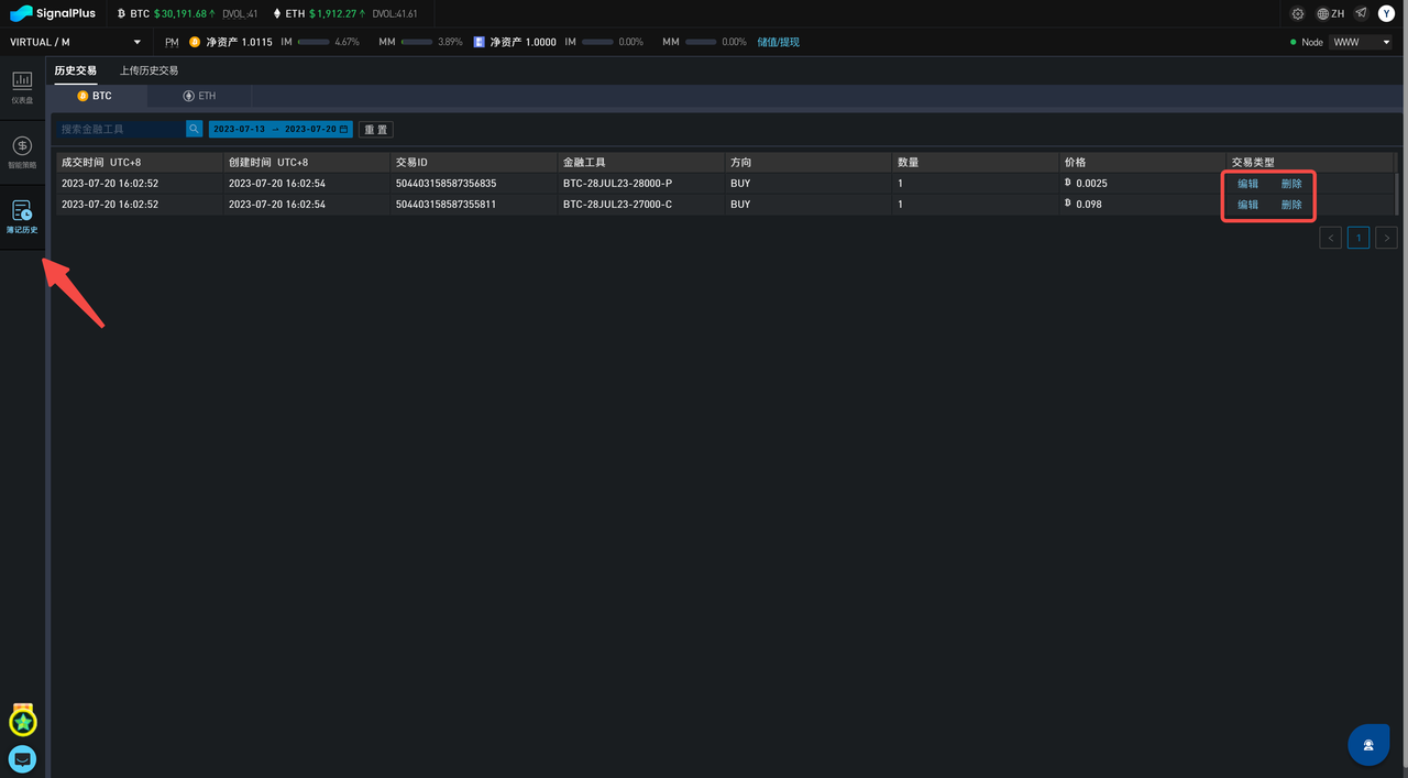 最后，如果您想编辑或删除虚拟账户中过去的任何交易，只需进入左侧的簿记历史模块进行处理。